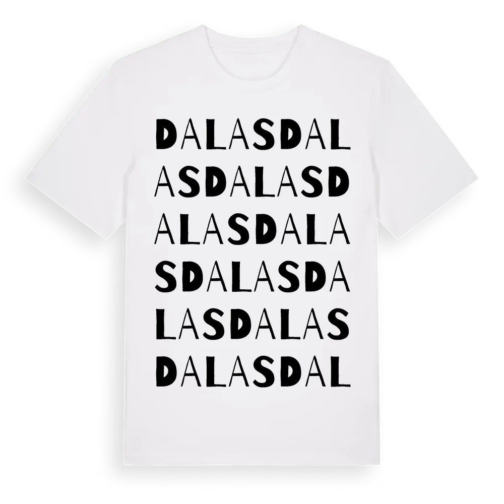 Dalas ordlek t-shirt är inspirerad av Dalas i Hallands län, Sverige. Tröjan är designad för dig som har en speciell koppling till platsen – oavsett om du bor här, har rötterna här eller bara älskar Dalas.