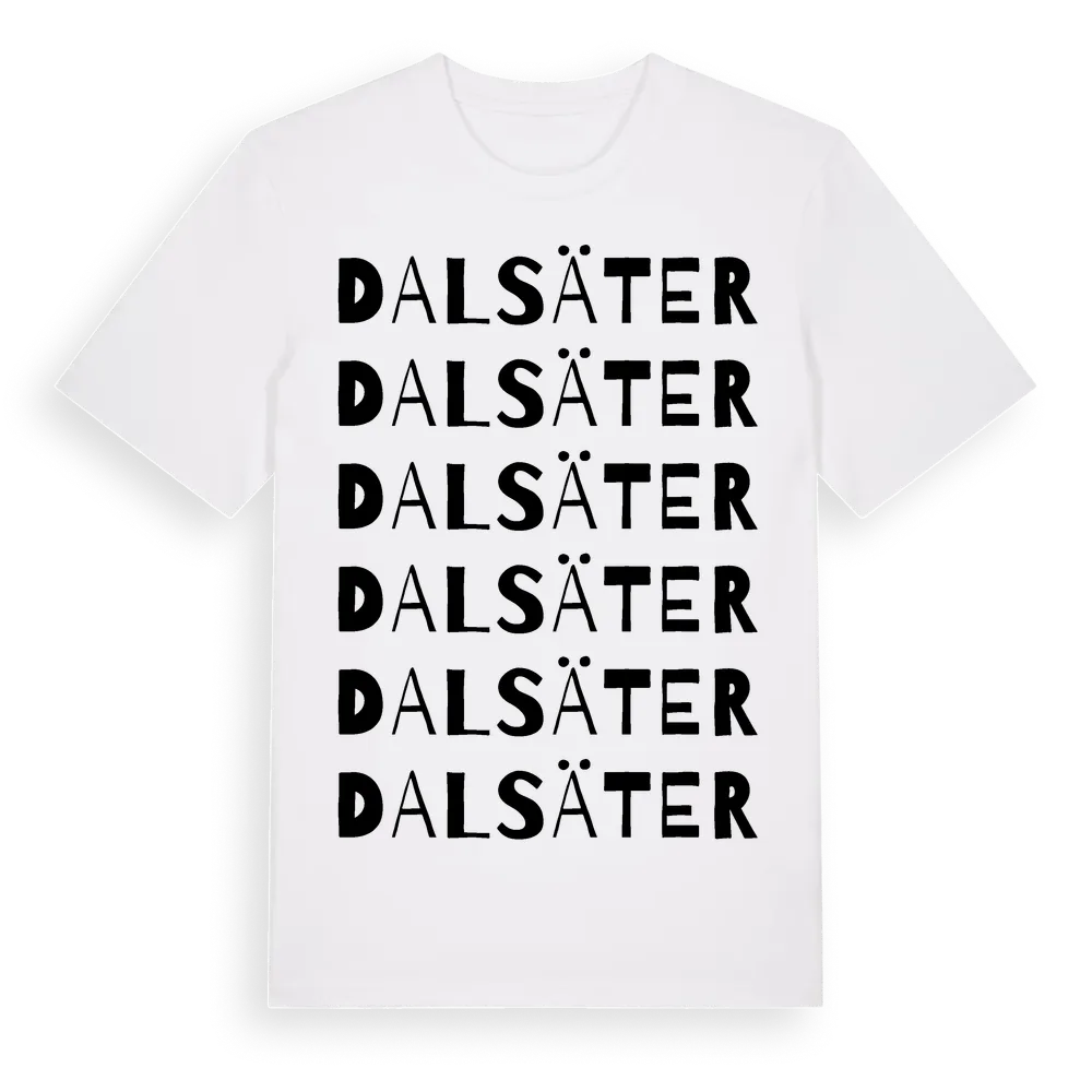 Dalsäter ordlek t-shirt är inspirerad av Dalsäter i Hallands län, Sverige. Tröjan är designad för dig som har en speciell koppling till platsen – oavsett om du bor här, har rötterna här eller bara älskar Dalsäter.