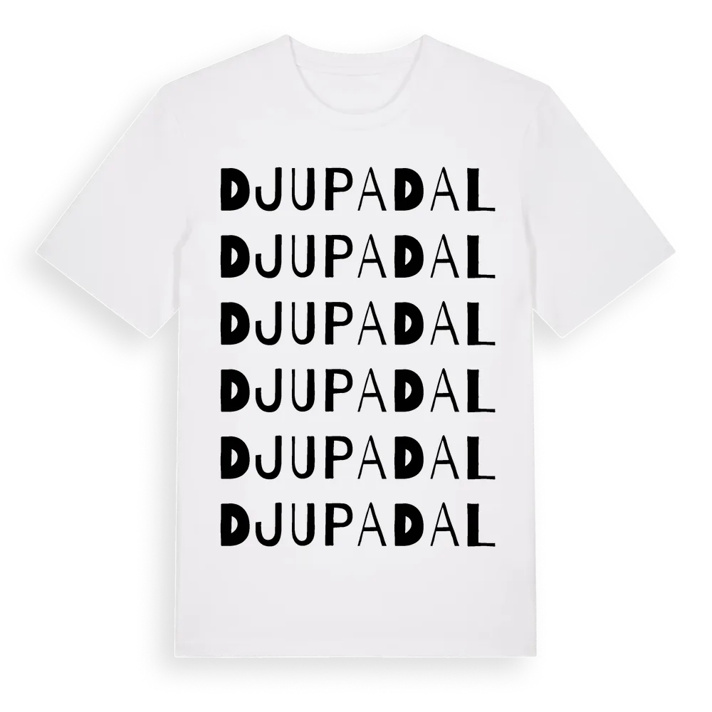 Djupadal ordlek t-shirt är inspirerad av Djupadal i Hallands län, Sverige. Tröjan är designad för dig som har en speciell koppling till platsen – oavsett om du bor här, har rötterna här eller bara älskar Djupadal.