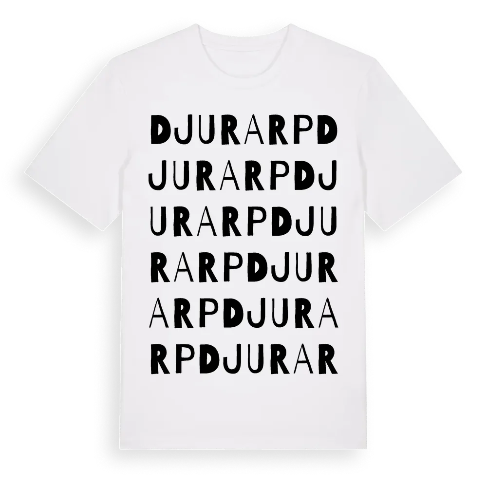 Djurarp ordlek t-shirt är inspirerad av Djurarp i Hallands län, Sverige. Tröjan är designad för dig som har en speciell koppling till platsen – oavsett om du bor här, har rötterna här eller bara älskar Djurarp.