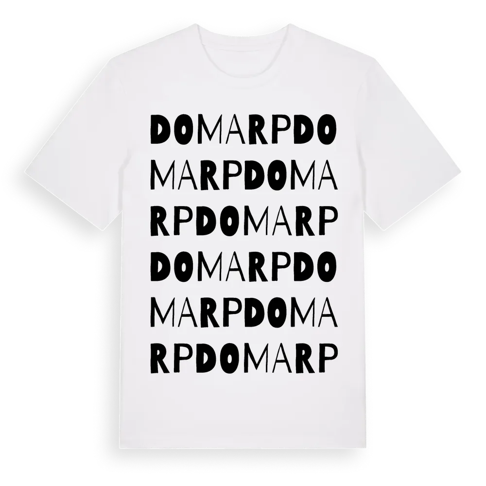Domarp ordlek t-shirt är inspirerad av Domarp i Hallands län, Sverige. Tröjan är designad för dig som har en speciell koppling till platsen – oavsett om du bor här, har rötterna här eller bara älskar Domarp.