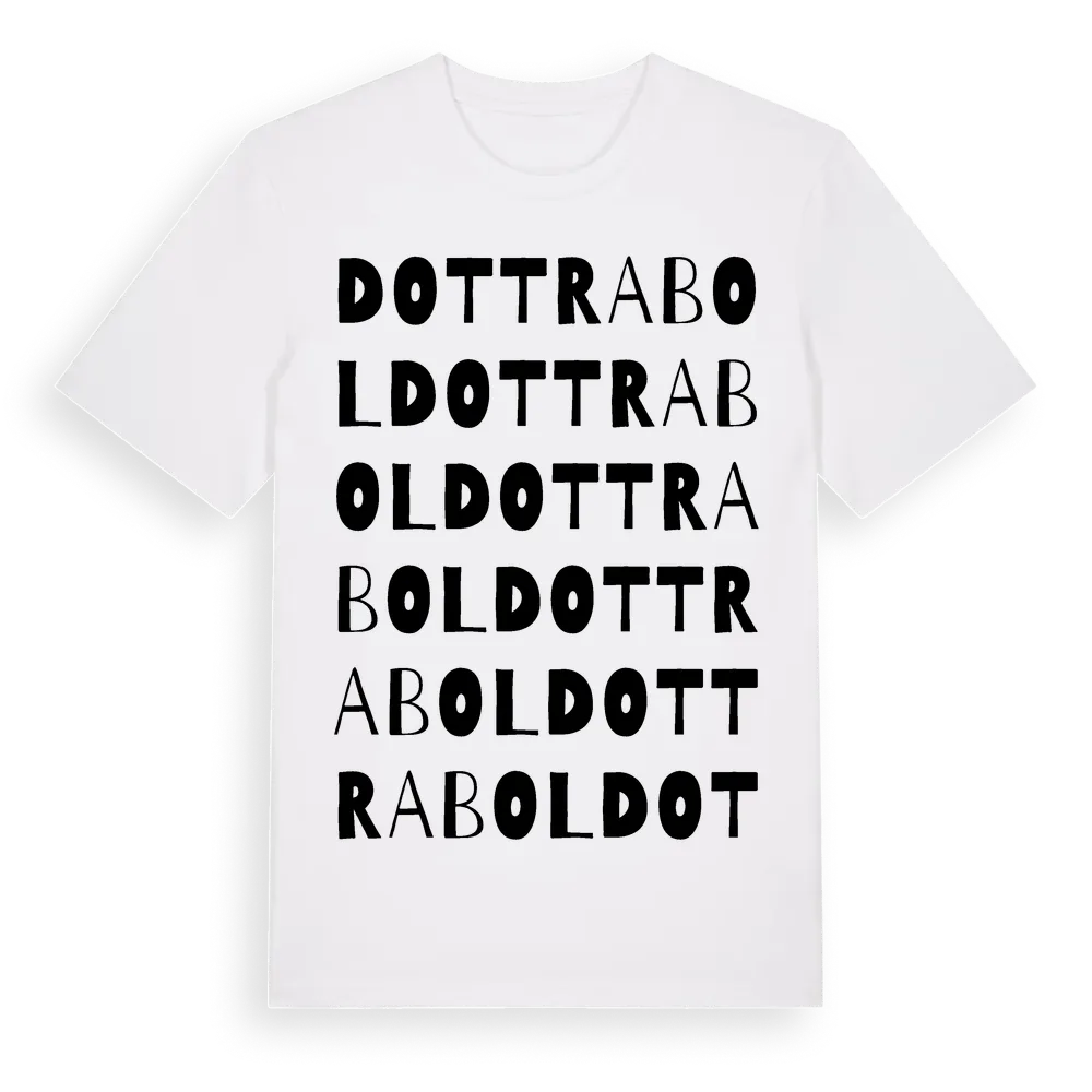 Dottrabol ordlek t-shirt är inspirerad av Dottrabol i Hallands län, Sverige. Tröjan är designad för dig som har en speciell koppling till platsen – oavsett om du bor här, har rötterna här eller bara älskar Dottrabol.