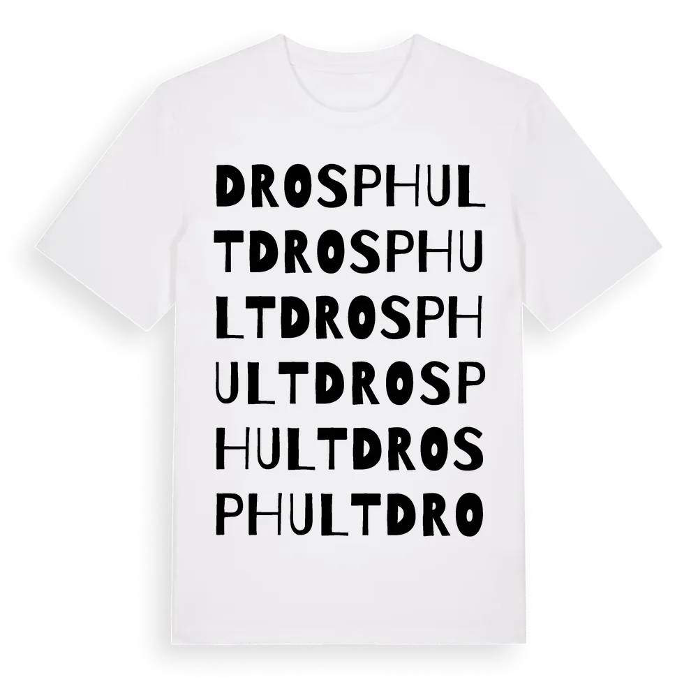 Drosphult ordlek t-shirt är inspirerad av Drosphult i Hallands län, Sverige. Tröjan är designad för dig som har en speciell koppling till platsen – oavsett om du bor här, har rötterna här eller bara älskar Drosphult.