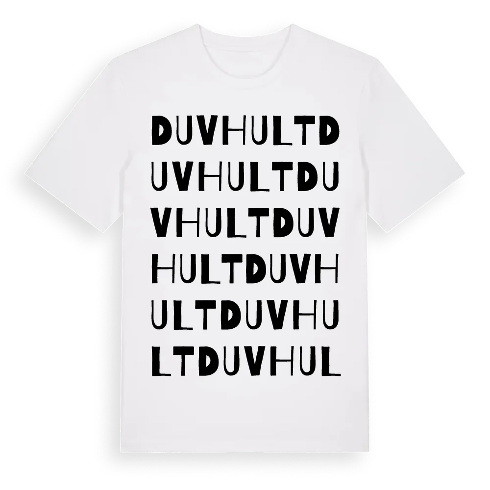 Duvhult ordlek t-shirt är inspirerad av Duvhult i Hallands län, Sverige. Tröjan är designad för dig som har en speciell koppling till platsen – oavsett om du bor här, har rötterna här eller bara älskar Duvhult.