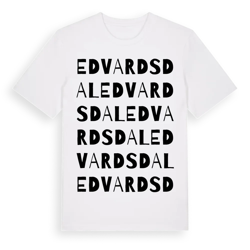 Edvardsdal ordlek t-shirt är inspirerad av Edvardsdal i Hallands län, Sverige. Tröjan är designad för dig som har en speciell koppling till platsen – oavsett om du bor här, har rötterna här eller bara älskar Edvardsdal.