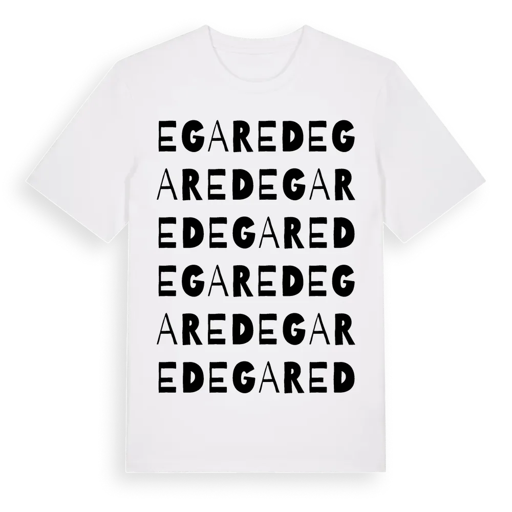 Egared ordlek t-shirt är inspirerad av Egared i Hallands län, Sverige. Tröjan är designad för dig som har en speciell koppling till platsen – oavsett om du bor här, har rötterna här eller bara älskar Egared.