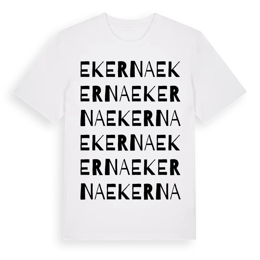 Ekerna ordlek t-shirt är inspirerad av Ekerna i Hallands län, Sverige. Tröjan är designad för dig som har en speciell koppling till platsen – oavsett om du bor här, har rötterna här eller bara älskar Ekerna.