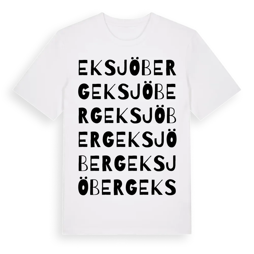Eksjöberg ordlek t-shirt är inspirerad av Eksjöberg i Hallands län, Sverige. Tröjan är designad för dig som har en speciell koppling till platsen – oavsett om du bor här, har rötterna här eller bara älskar Eksjöberg.