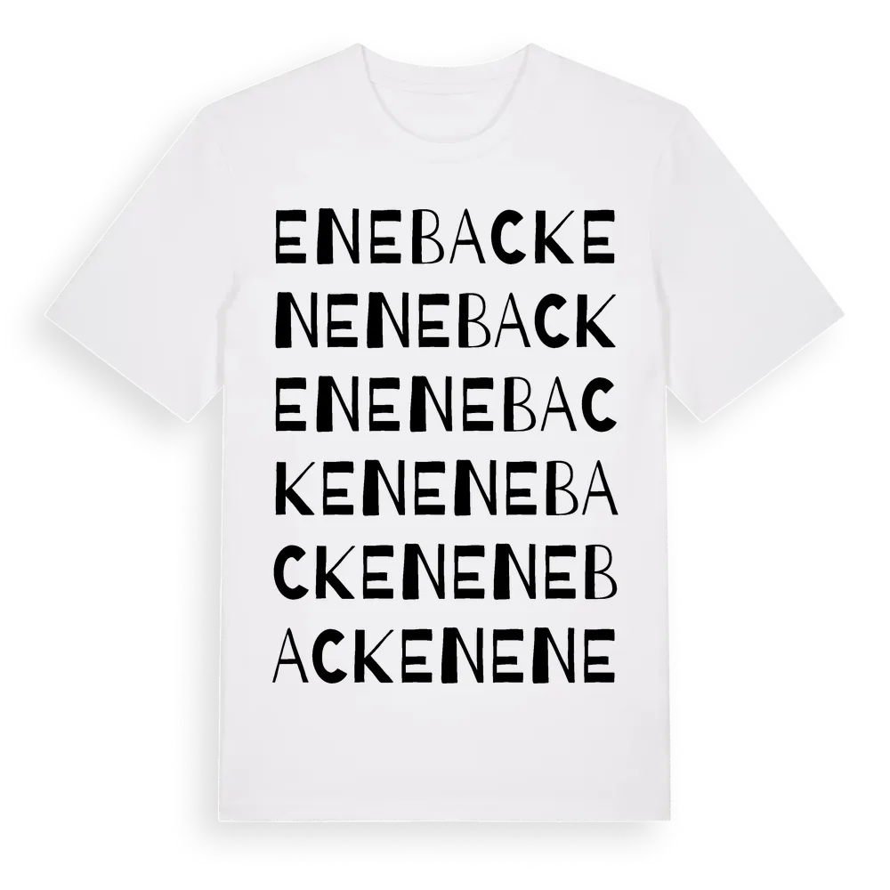Enebacken ordlek t-shirt är inspirerad av Enebacken i Hallands län, Sverige. Tröjan är designad för dig som har en speciell koppling till platsen – oavsett om du bor här, har rötterna här eller bara älskar Enebacken.
