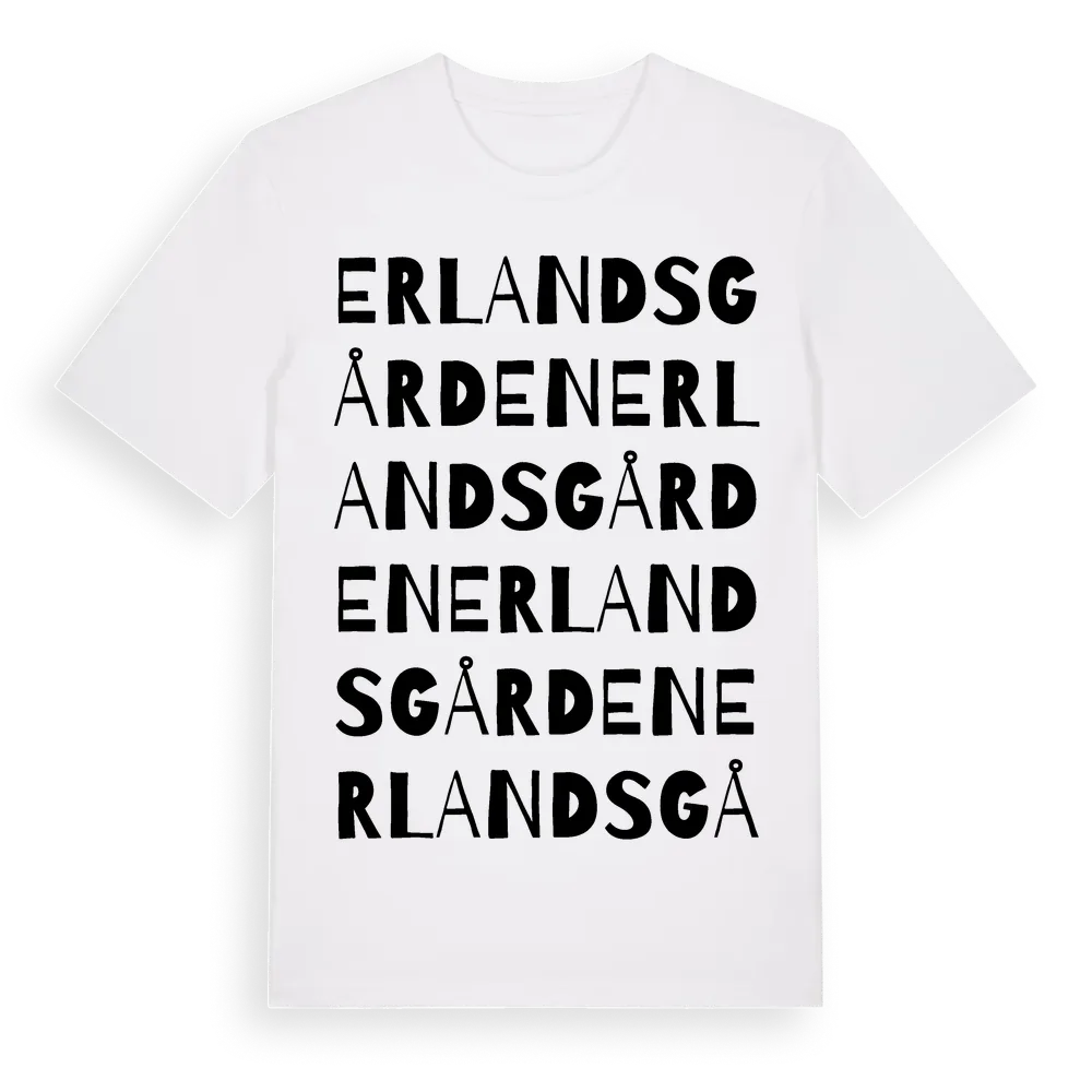 Erlandsgården ordlek t-shirt är inspirerad av stadsdelen Erlandsgården i Hallands län, Sverige. Tröjan är designad för dig som har en speciell koppling till platsen – oavsett om du bor här, har rötterna här eller bara älskar Erlandsgården.