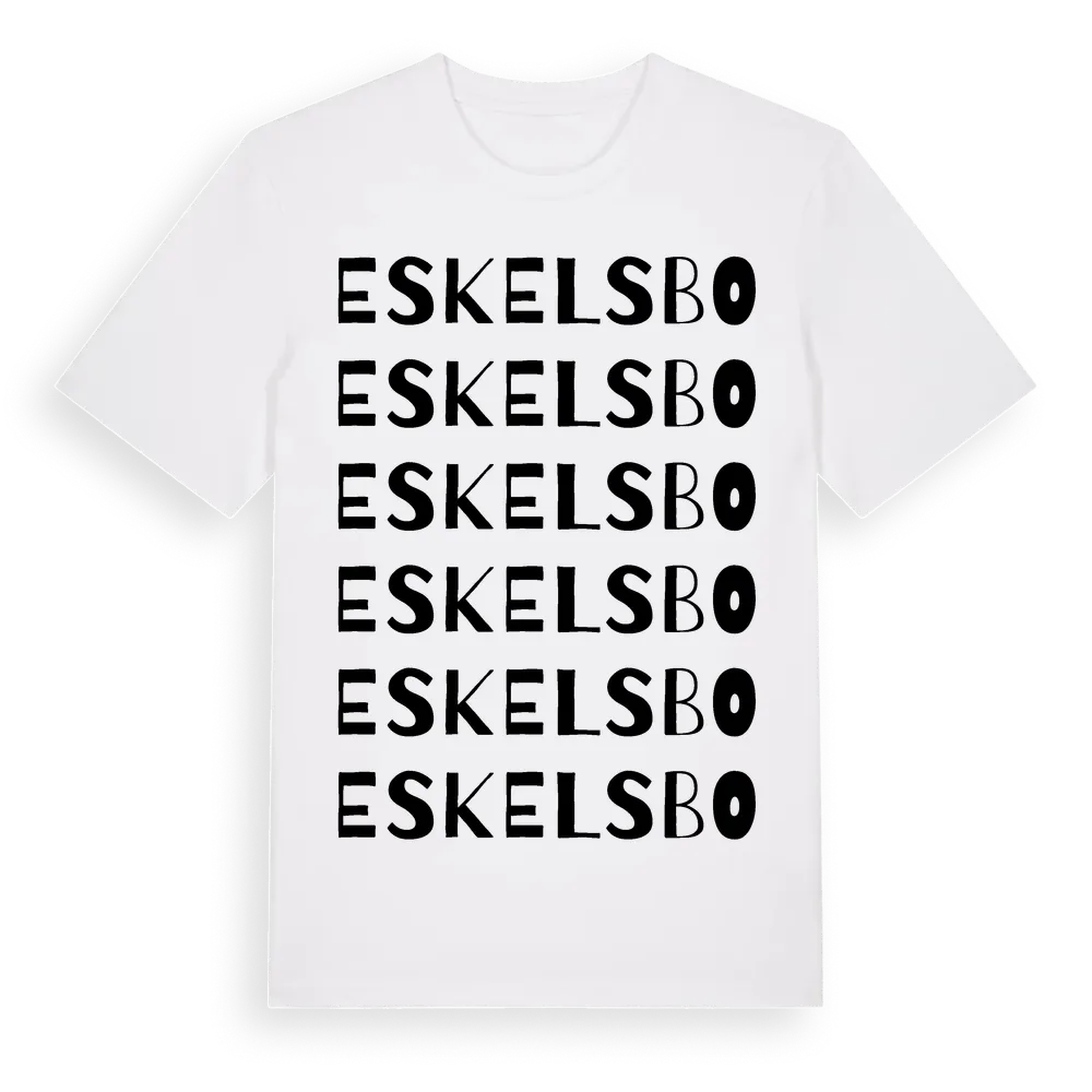 Eskelsbo ordlek t-shirt är inspirerad av byn Eskelsbo i Hallands län, Sverige. Tröjan är designad för dig som har en speciell koppling till platsen – oavsett om du bor här, har rötterna här eller bara älskar Eskelsbo.