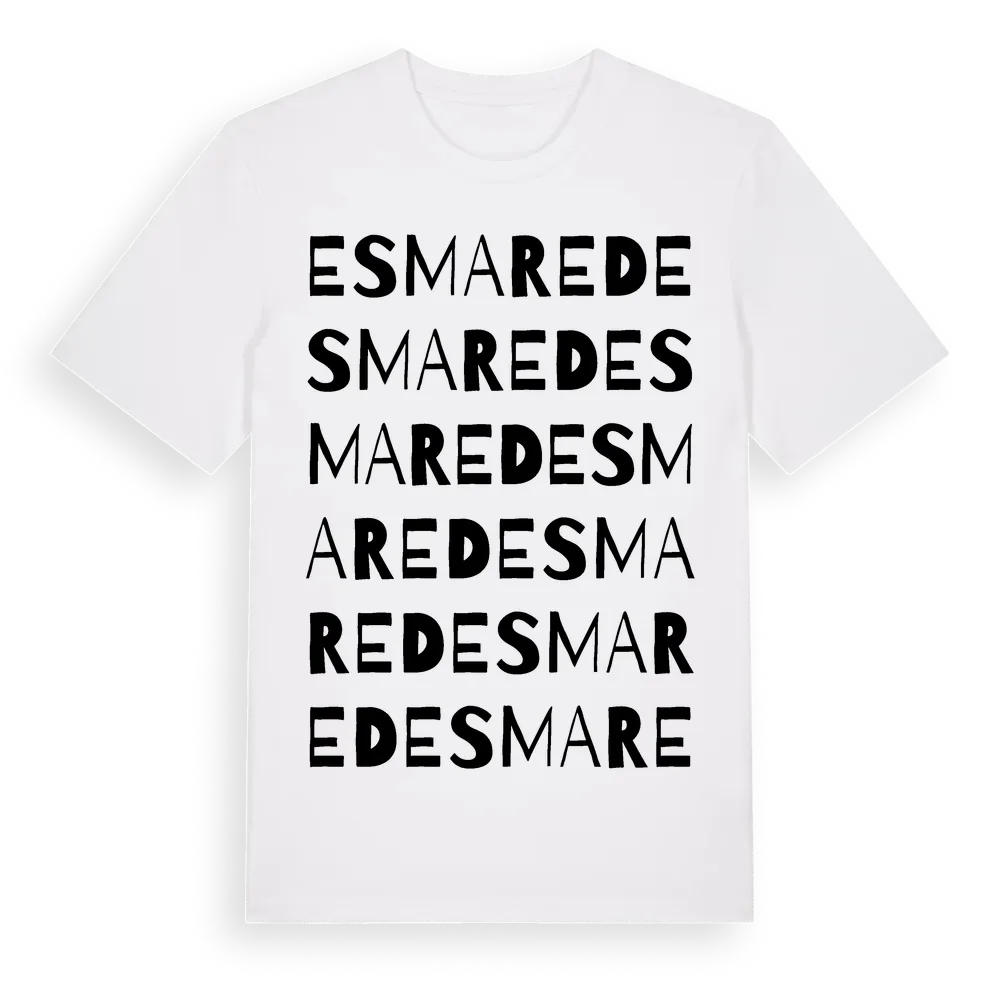 Esmared ordlek t-shirt är inspirerad av byn Esmared i Hallands län, Sverige. Tröjan är designad för dig som har en speciell koppling till platsen – oavsett om du bor här, har rötterna här eller bara älskar Esmared.
