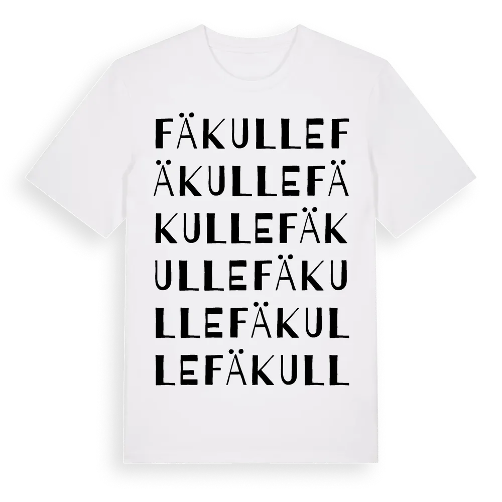 Fäkulle ordlek t-shirt är inspirerad av Fäkulle i Hallands län, Sverige. Tröjan är designad för dig som har en speciell koppling till platsen – oavsett om du bor här, har rötterna här eller bara älskar Fäkulle.