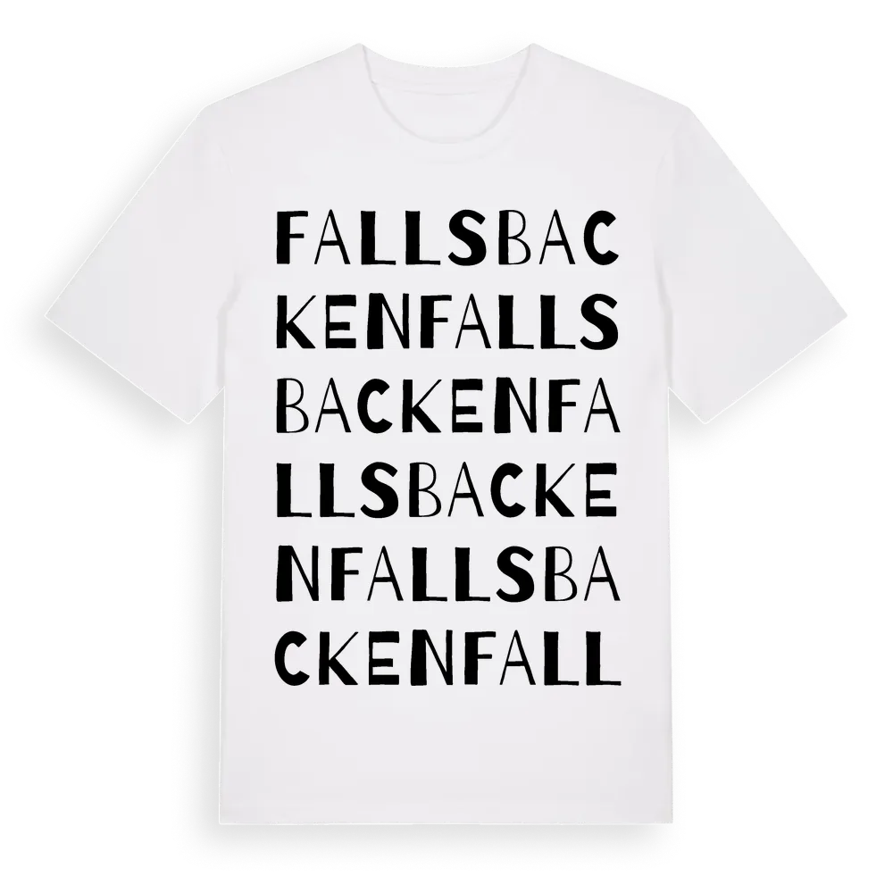 En ordlek byggd på Fallsbackens namn. Subtilt och klurig – ett motiv som bara de som verkligen känner platsen fullt ut förstår. Premium bomull, unisex – från Fallsbacken i Hallands län.