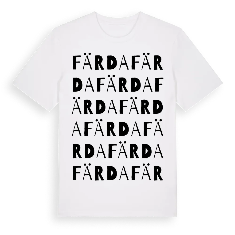 Färda ordlek t-shirt är inspirerad av Färda i Hallands län, Sverige. Tröjan är designad för dig som har en speciell koppling till platsen – oavsett om du bor här, har rötterna här eller bara älskar Färda.