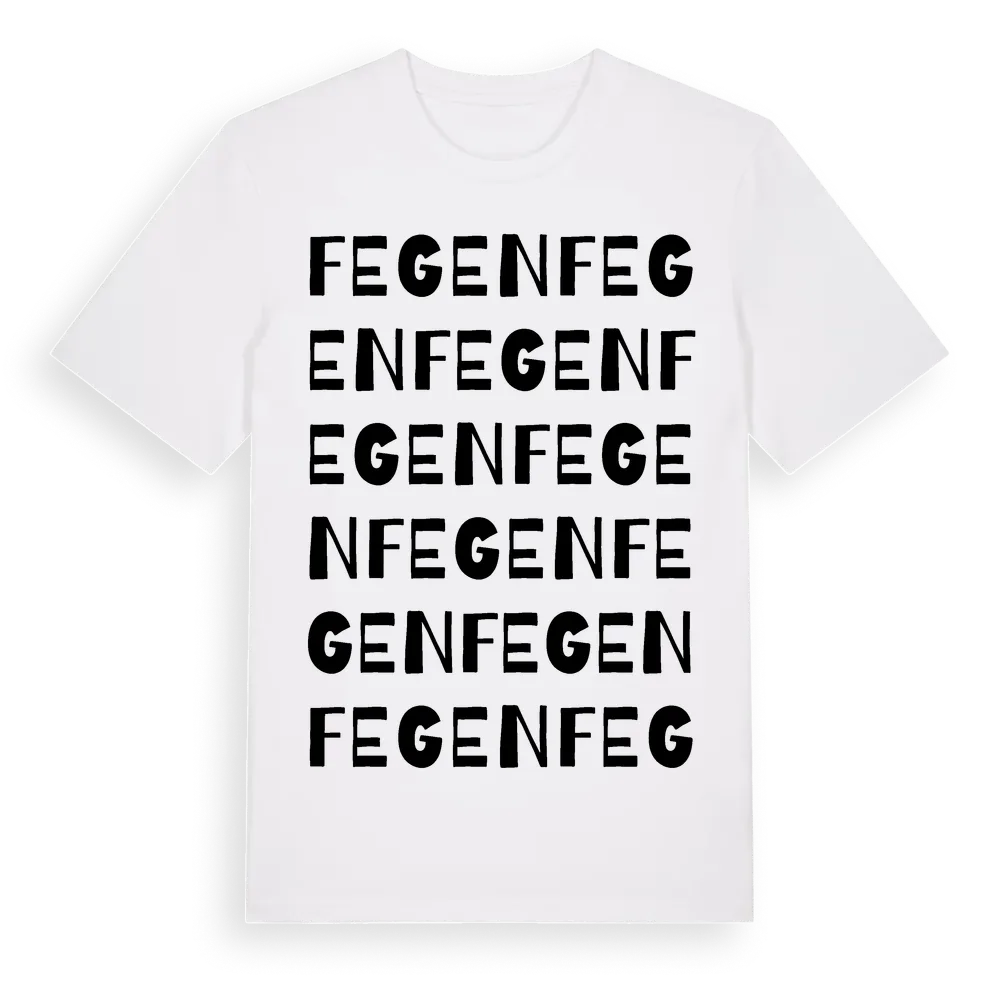 Fegen ordlek t-shirt är inspirerad av byn Fegen i Hallands län, Sverige. Tröjan är designad för dig som har en speciell koppling till platsen – oavsett om du bor här, har rötterna här eller bara älskar Fegen.