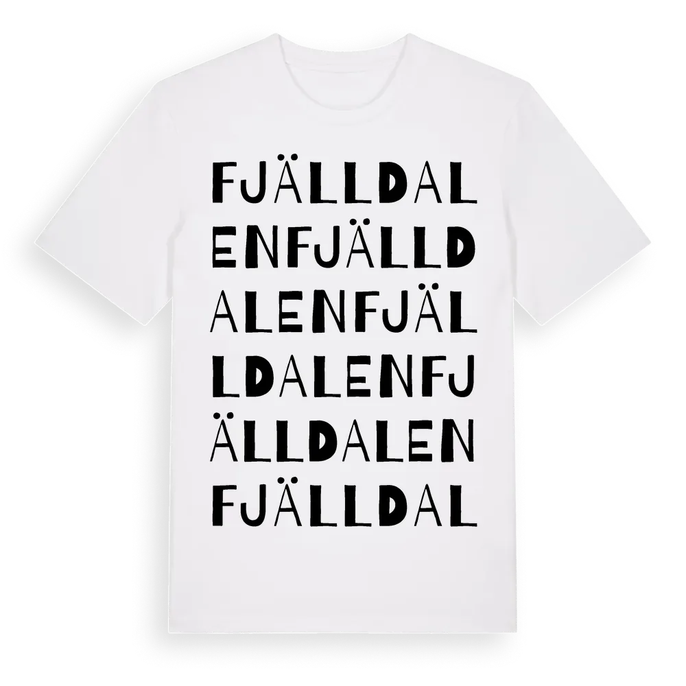 Fjälldalen ordlek t-shirt är inspirerad av Fjälldalen i Hallands län, Sverige. Tröjan är designad för dig som har en speciell koppling till platsen – oavsett om du bor här, har rötterna här eller bara älskar Fjälldalen.