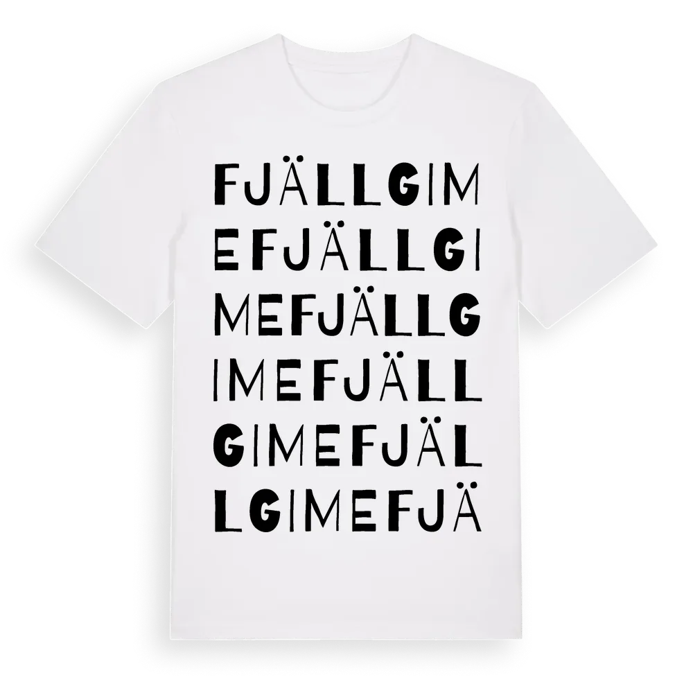 Fjällgime ordlek t-shirt är inspirerad av Fjällgime i Hallands län, Sverige. Tröjan är designad för dig som har en speciell koppling till platsen – oavsett om du bor här, har rötterna här eller bara älskar Fjällgime.