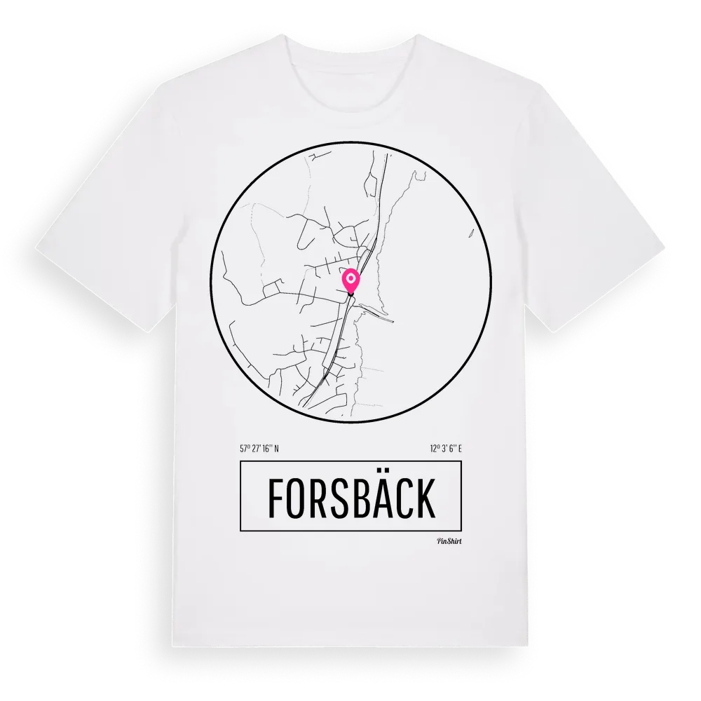 Forsbäck t-shirt är inspirerad av byn Forsbäck i Hallands län, Sverige. Tröjan är designad för dig som har en speciell koppling till platsen – oavsett om du bor här, har rötterna här eller bara älskar Forsbäck.