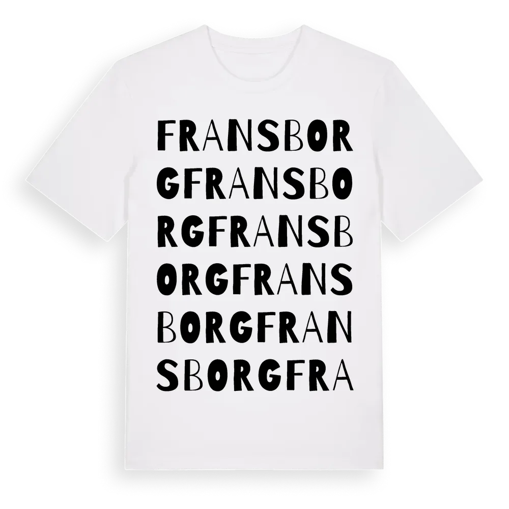 Fransborg ordlek t-shirt är inspirerad av Fransborg i Hallands län, Sverige. Tröjan är designad för dig som har en speciell koppling till platsen – oavsett om du bor här, har rötterna här eller bara älskar Fransborg.