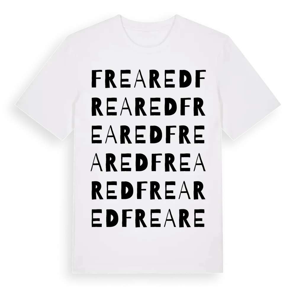 En ordlek byggd på Freareds namn. Subtilt och klurig – ett motiv som bara de som verkligen känner platsen fullt ut förstår. Premium bomull, unisex – från Freared i Hallands län.