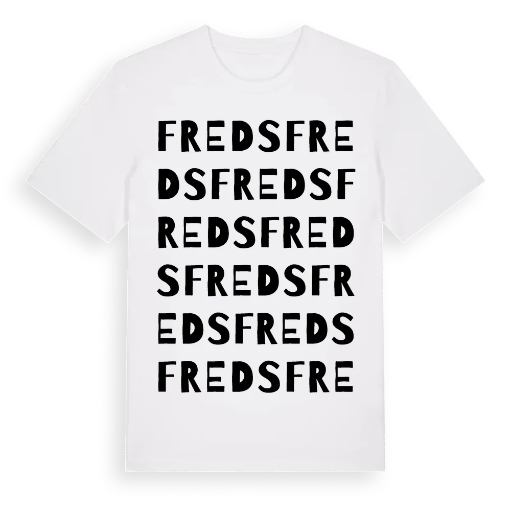 Freds ordlek t-shirt är inspirerad av Freds i Hallands län, Sverige. Tröjan är designad för dig som har en speciell koppling till platsen – oavsett om du bor här, har rötterna här eller bara älskar Freds.