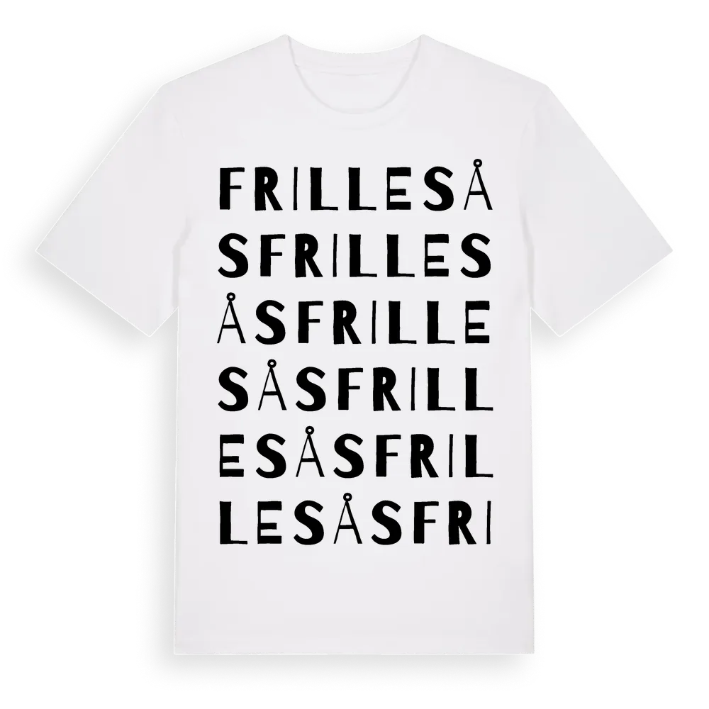 Frillesås ordlek t-shirt är inspirerad av byn Frillesås i Hallands län, Sverige. Tröjan är designad för dig som har en speciell koppling till platsen – oavsett om du bor här, har rötterna här eller bara älskar Frillesås.
