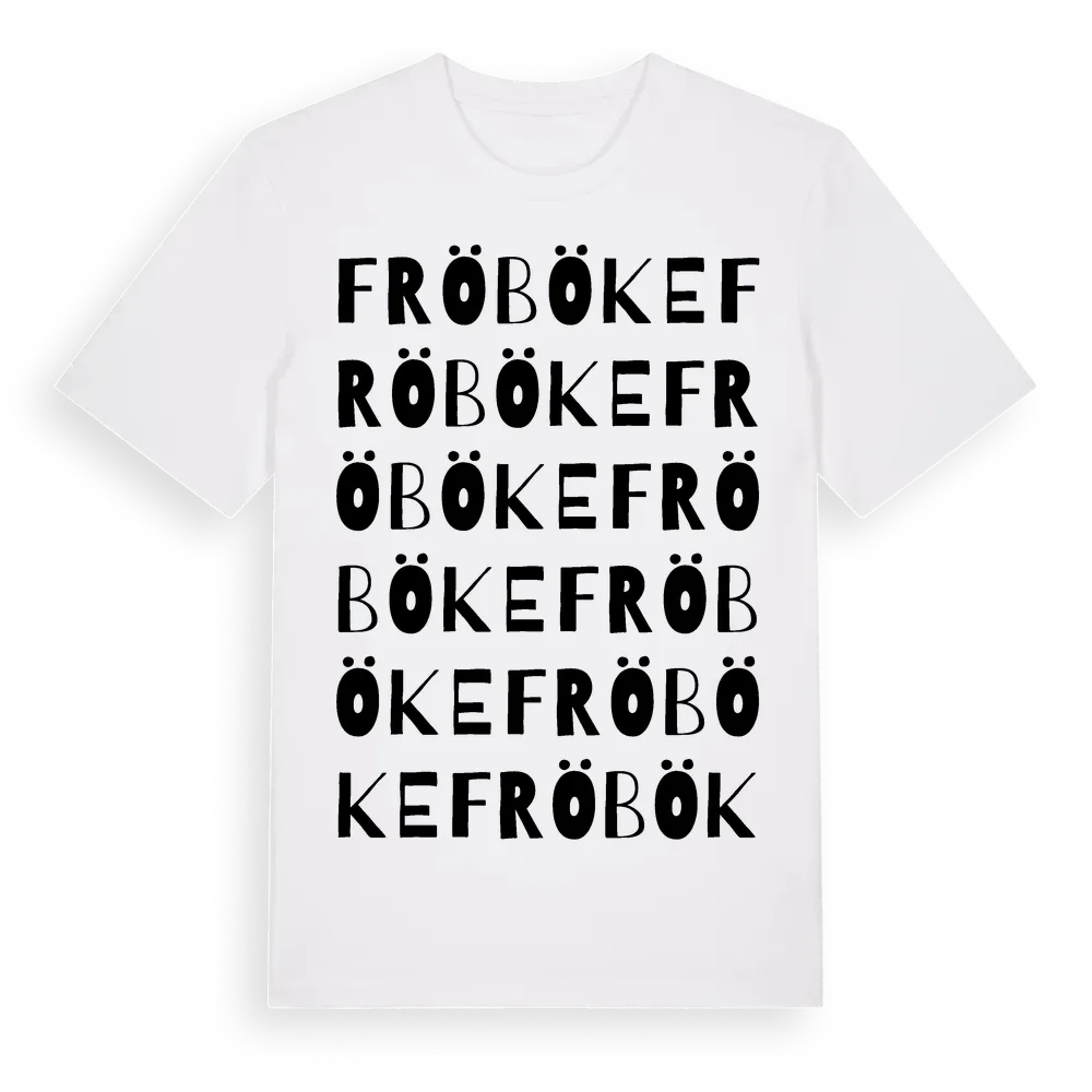 Fröböke ordlek t-shirt är inspirerad av byn Fröböke i Hallands län, Sverige. Tröjan är designad för dig som har en speciell koppling till platsen – oavsett om du bor här, har rötterna här eller bara älskar Fröböke.
