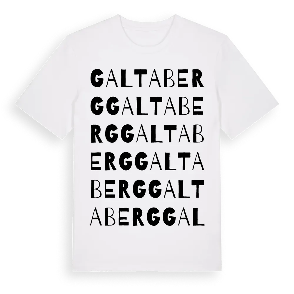 Galtaberg ordlek t-shirt är inspirerad av Galtaberg i Hallands län, Sverige. Tröjan är designad för dig som har en speciell koppling till platsen – oavsett om du bor här, har rötterna här eller bara älskar Galtaberg.