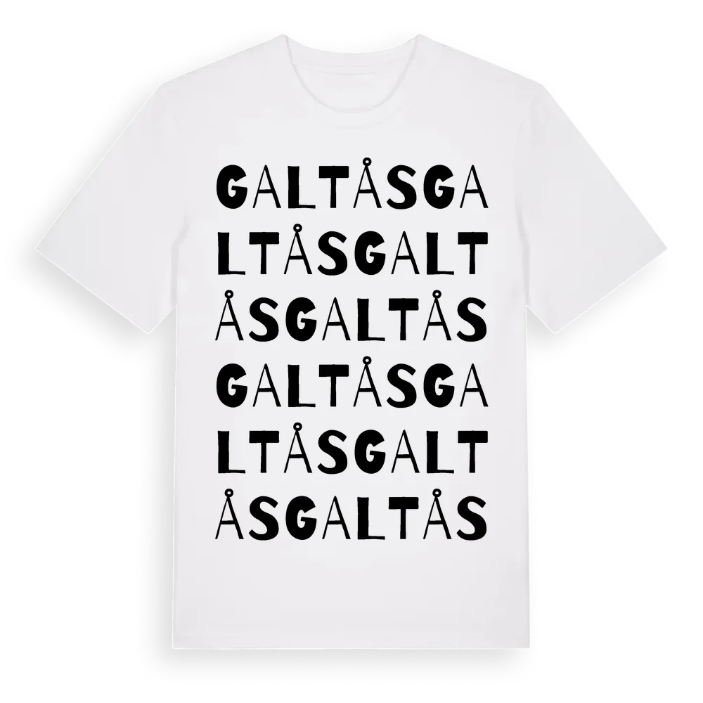 Galtås ordlek t-shirt är inspirerad av byn Galtås i Hallands län, Sverige. Tröjan är designad för dig som har en speciell koppling till platsen – oavsett om du bor här, har rötterna här eller bara älskar Galtås.