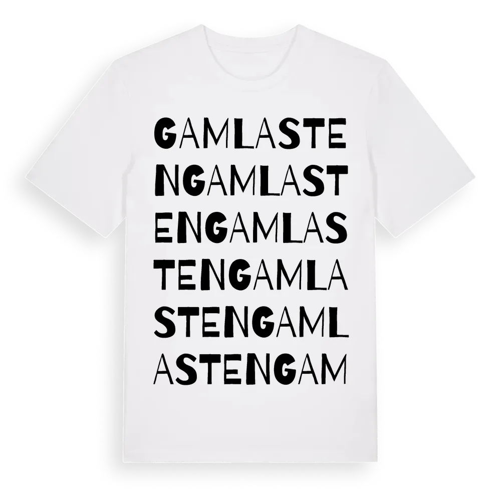 Gamla Sten ordlek t-shirt är inspirerad av Gamla Sten i Hallands län, Sverige. Tröjan är designad för dig som har en speciell koppling till platsen – oavsett om du bor här, har rötterna här eller bara älskar Gamla Sten.