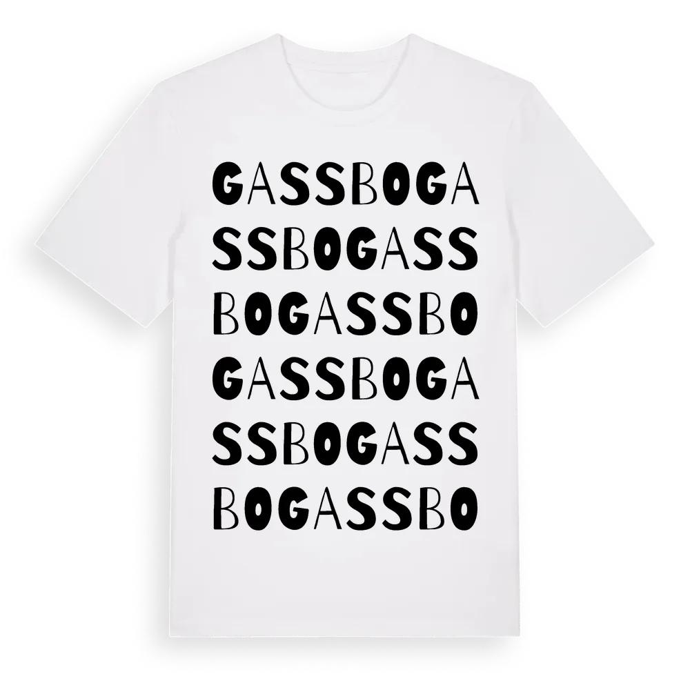 En ordlek byggd på Gassbos namn. Subtilt och klurig – ett motiv som bara de som verkligen känner platsen fullt ut förstår. Premium bomull, unisex – från Gassbo i Hallands län.