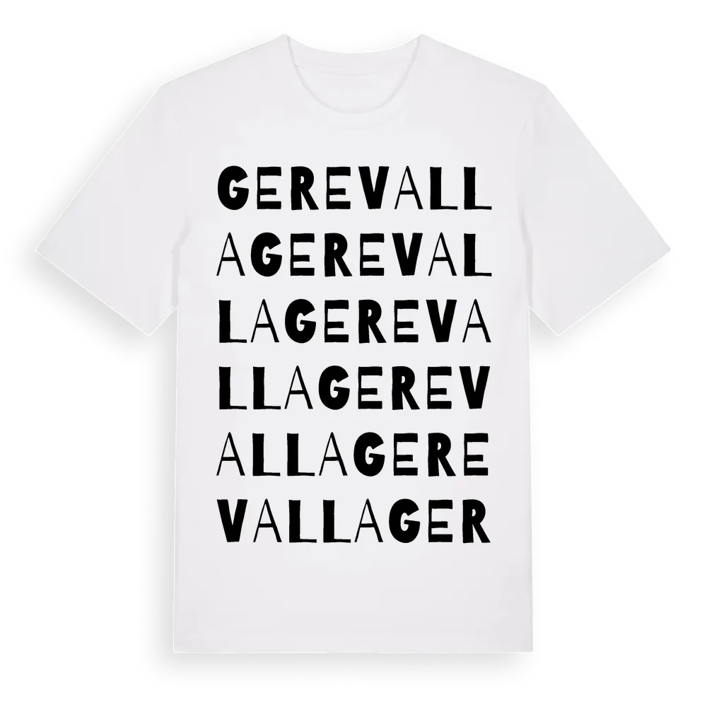 Gerevalla ordlek t-shirt är inspirerad av Gerevalla i Hallands län, Sverige. Tröjan är designad för dig som har en speciell koppling till platsen – oavsett om du bor här, har rötterna här eller bara älskar Gerevalla.