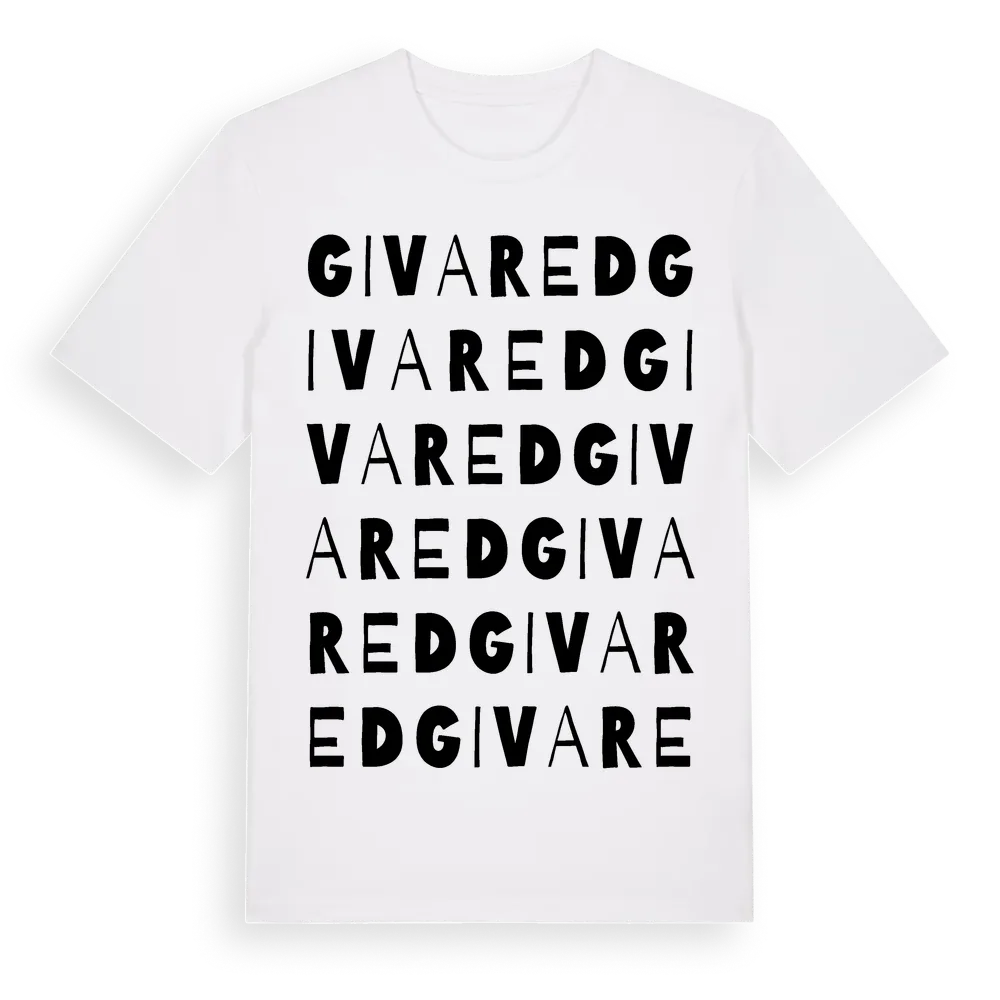 Givared ordlek t-shirt är inspirerad av Givared i Hallands län, Sverige. Tröjan är designad för dig som har en speciell koppling till platsen – oavsett om du bor här, har rötterna här eller bara älskar Givared.
