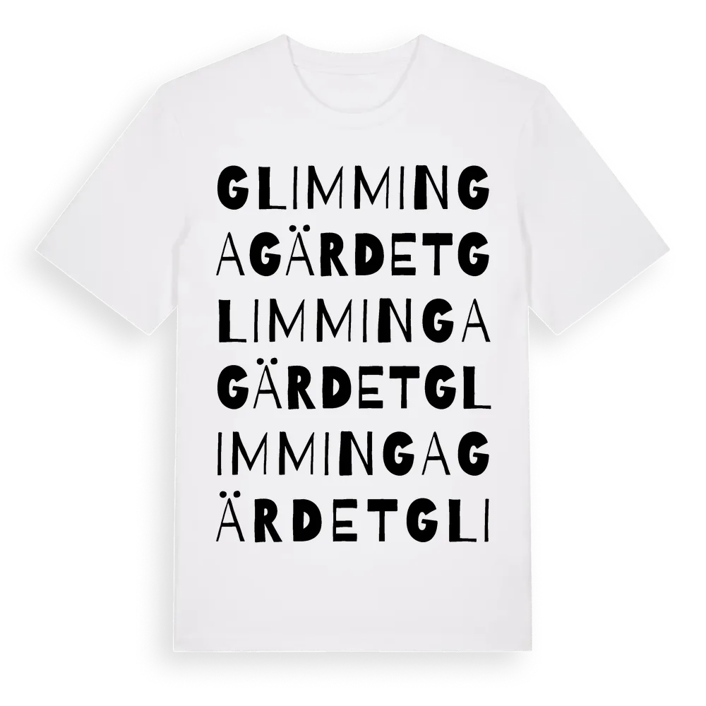 Glimmingagärdet ordlek t-shirt är inspirerad av Glimmingagärdet i Hallands län, Sverige. Tröjan är designad för dig som har en speciell koppling till platsen – oavsett om du bor här, har rötterna här eller bara älskar Glimmingagärdet.