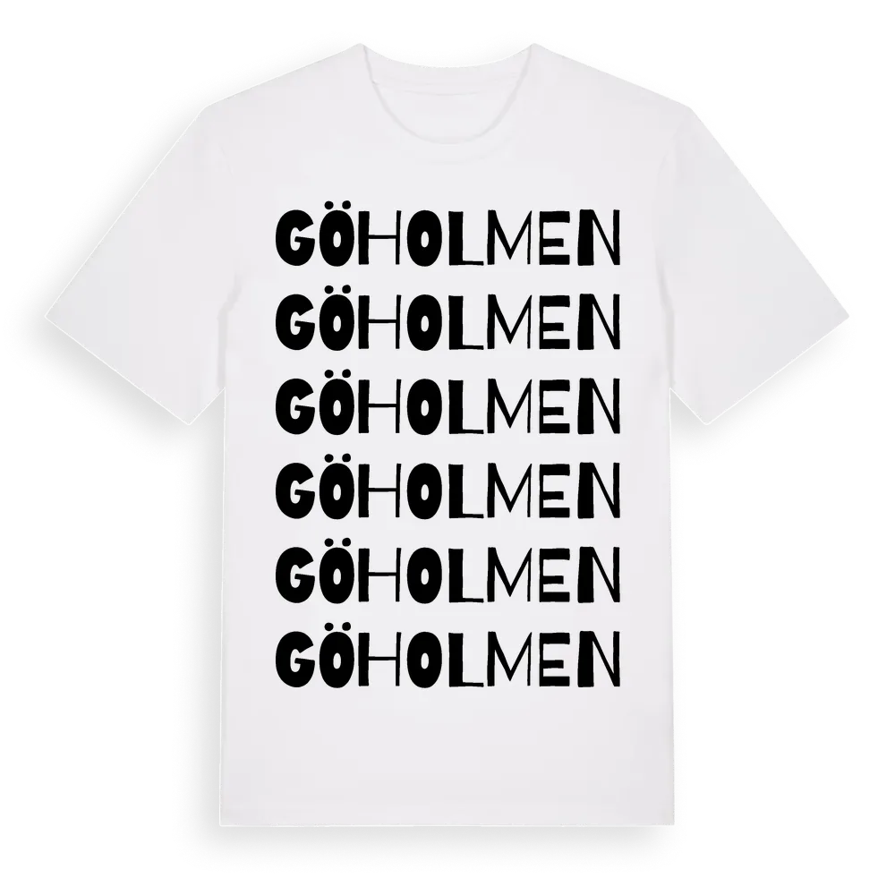 Göholmen ordlek t-shirt är inspirerad av Göholmen i Hallands län, Sverige. Tröjan är designad för dig som har en speciell koppling till platsen – oavsett om du bor här, har rötterna här eller bara älskar Göholmen.