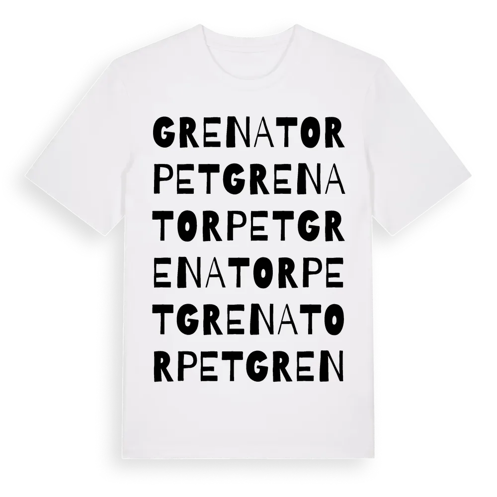 Grenatorpet ordlek t-shirt är inspirerad av Grenatorpet i Hallands län, Sverige. Tröjan är designad för dig som har en speciell koppling till platsen – oavsett om du bor här, har rötterna här eller bara älskar Grenatorpet.