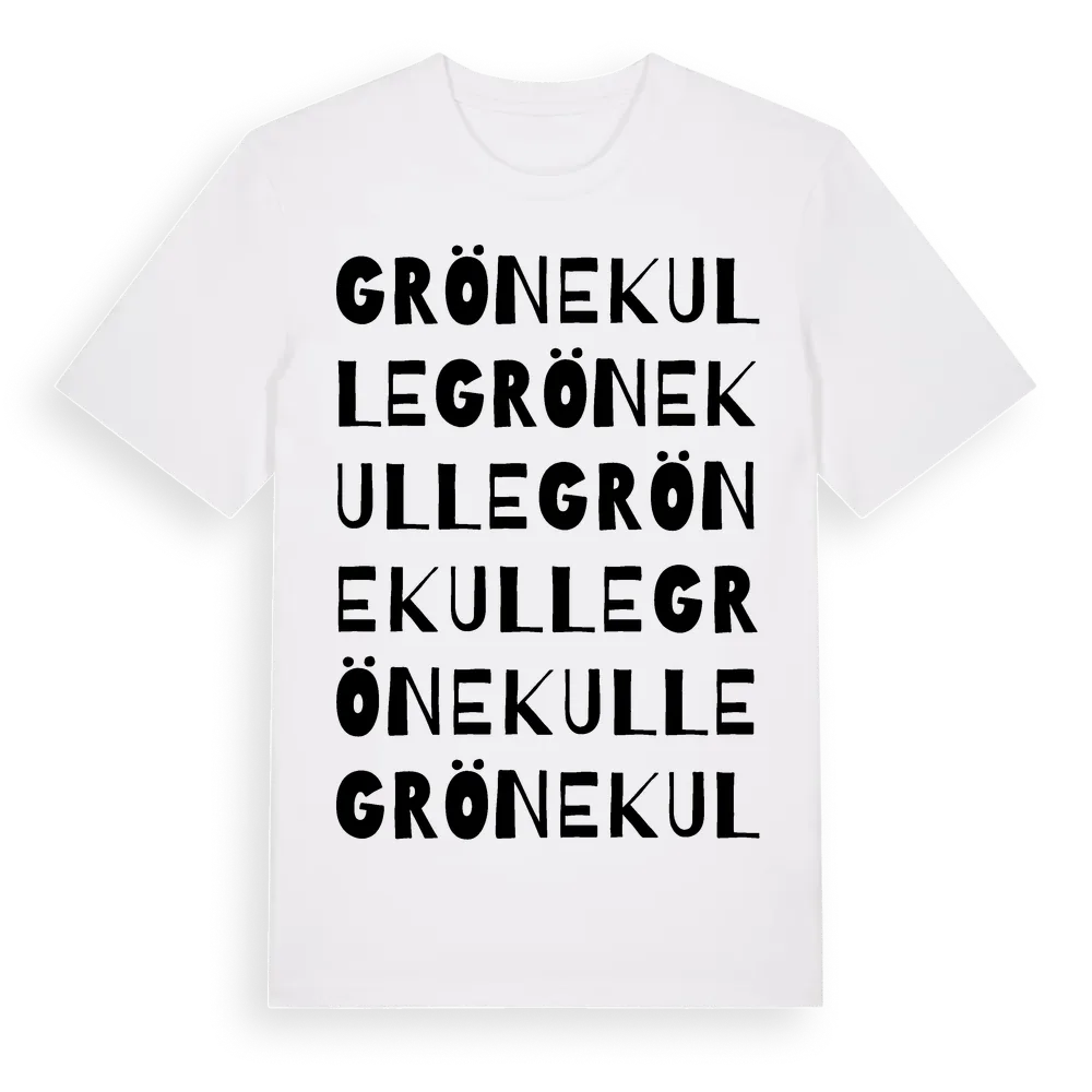 Grönekulle ordlek t-shirt är inspirerad av Grönekulle i Hallands län, Sverige. Tröjan är designad för dig som har en speciell koppling till platsen – oavsett om du bor här, har rötterna här eller bara älskar Grönekulle.