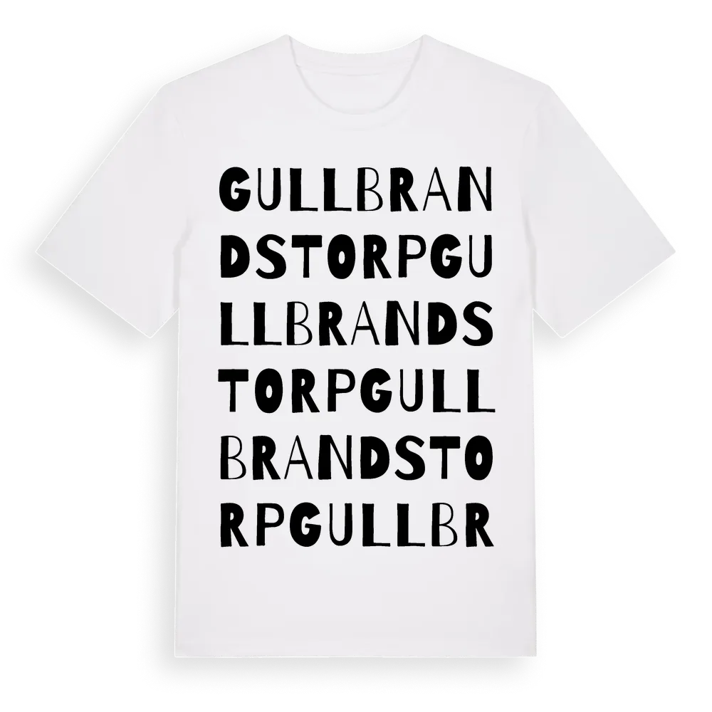 Gullbrandstorp ordlek t-shirt är inspirerad av byn Gullbrandstorp i Hallands län, Sverige. Tröjan är designad för dig som har en speciell koppling till platsen – oavsett om du bor här, har rötterna här eller bara älskar Gullbrandstorp.