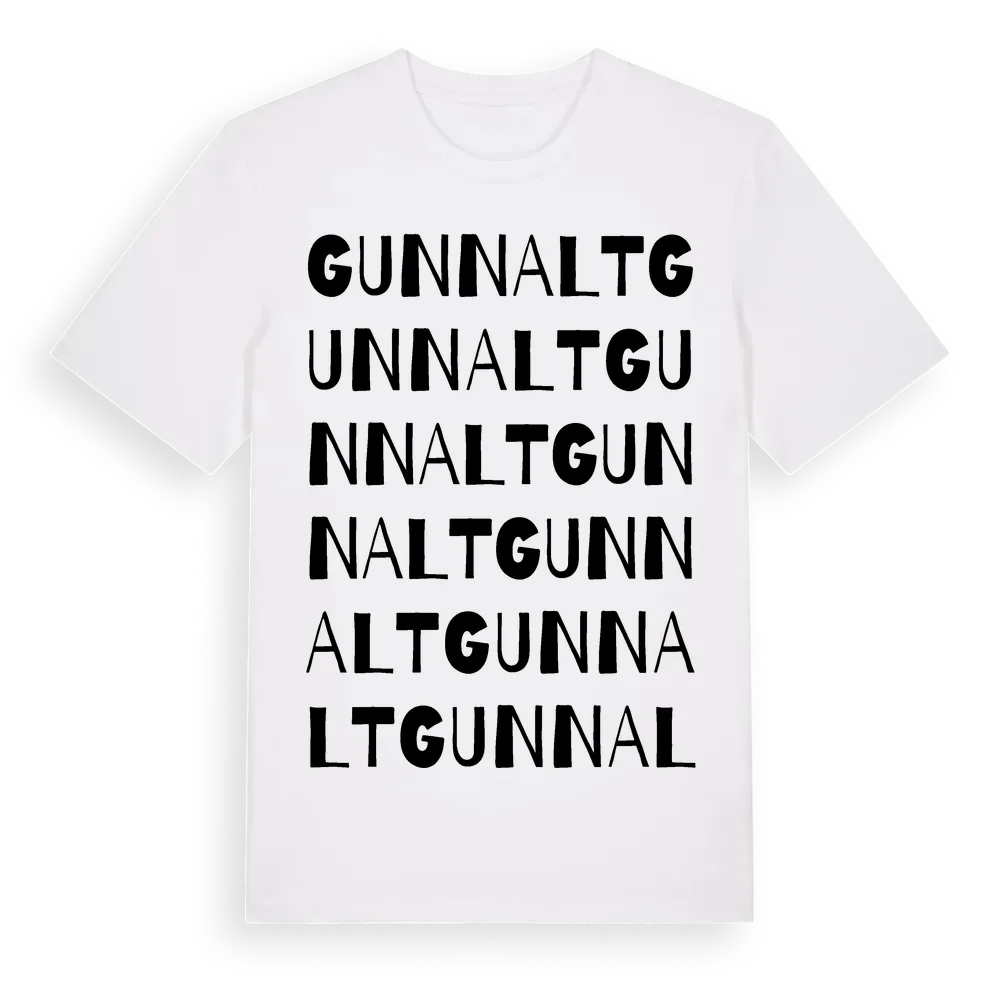 Gunnalt ordlek t-shirt är inspirerad av Gunnalt i Hallands län, Sverige. Tröjan är designad för dig som har en speciell koppling till platsen – oavsett om du bor här, har rötterna här eller bara älskar Gunnalt.