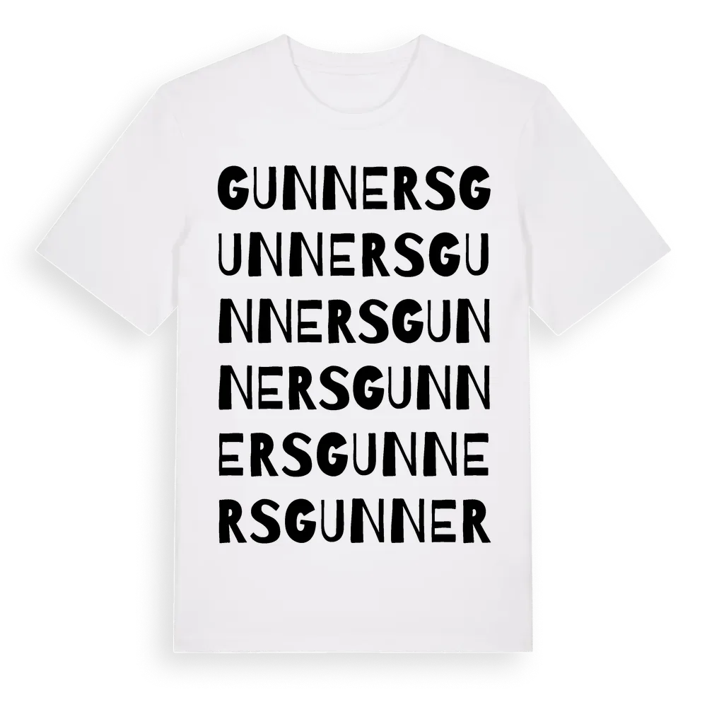 Gunners ordlek t-shirt är inspirerad av Gunners i Hallands län, Sverige. Tröjan är designad för dig som har en speciell koppling till platsen – oavsett om du bor här, har rötterna här eller bara älskar Gunners.