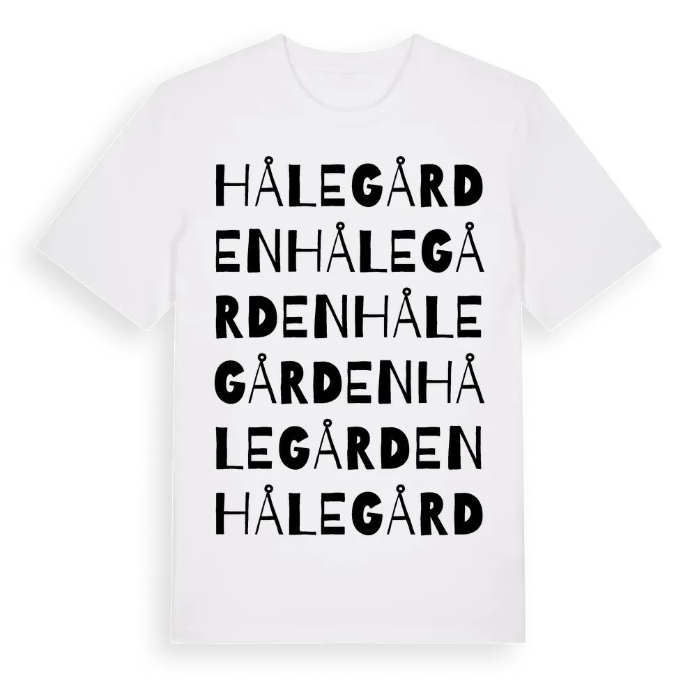 Hålegården ordlek t-shirt är inspirerad av Hålegården i Hallands län, Sverige. Tröjan är designad för dig som har en speciell koppling till platsen – oavsett om du bor här, har rötterna här eller bara älskar Hålegården.