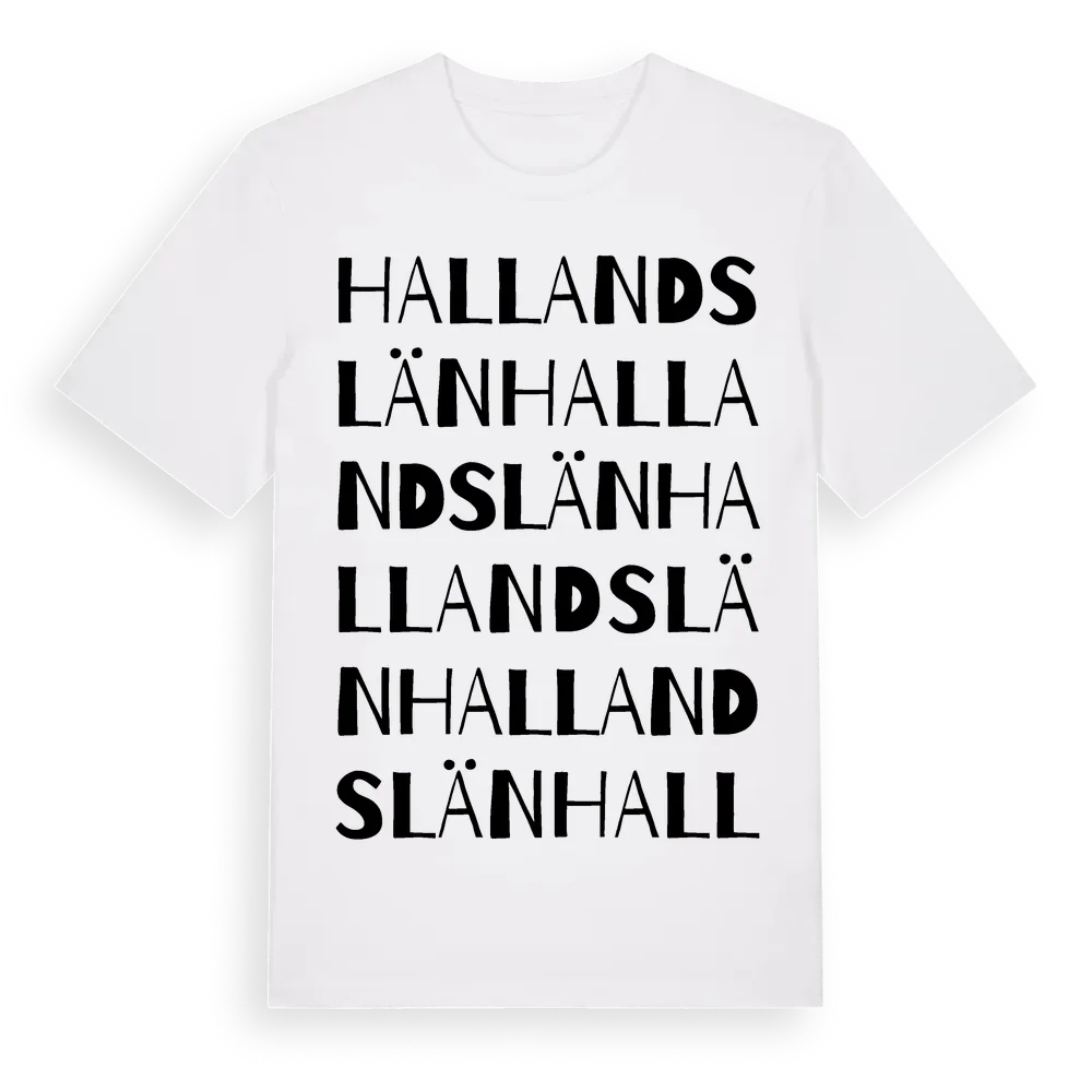 Hallands Län ordlek t-shirt är inspirerad av Hallands Län i Hallands län, Sverige. Tröjan är designad för dig som har en speciell koppling till platsen – oavsett om du bor här, har rötterna här eller bara älskar Hallands Län.