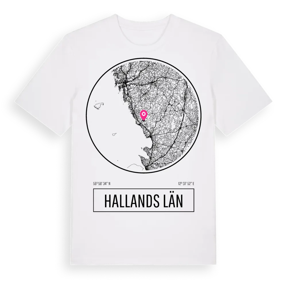 Hallands Län t-shirt är inspirerad av Hallands Län i Hallands län, Sverige. Tröjan är designad för dig som har en speciell koppling till platsen – oavsett om du bor här, har rötterna här eller bara älskar Hallands Län.