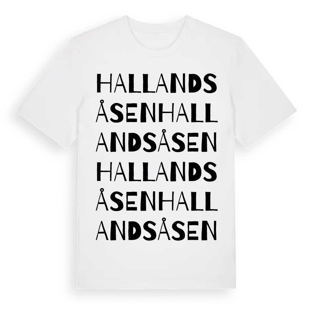Hallandsåsen ordlek t-shirt är inspirerad av regionen Hallandsåsen i Hallands län, Sverige. Tröjan är designad för dig som har en speciell koppling till platsen – oavsett om du bor här, har rötterna här eller bara älskar Hallandsåsen.