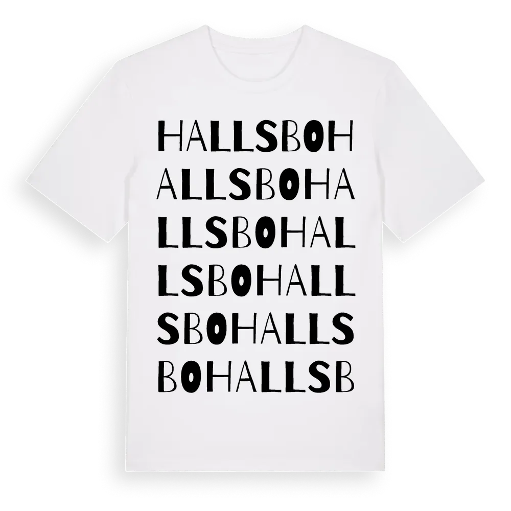 Hallsbo ordlek t-shirt är inspirerad av Hallsbo i Hallands län, Sverige. Tröjan är designad för dig som har en speciell koppling till platsen – oavsett om du bor här, har rötterna här eller bara älskar Hallsbo.