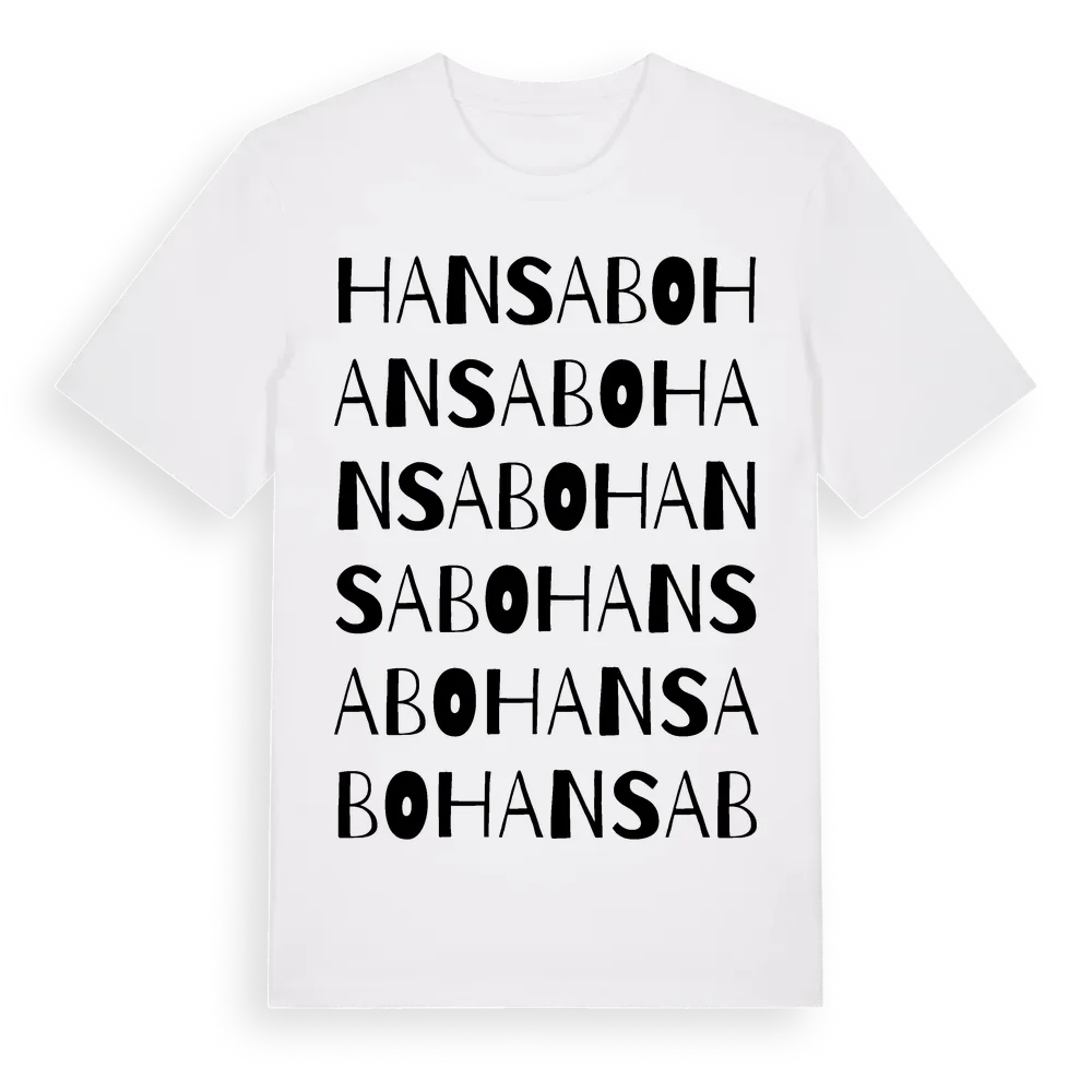 Hansabo ordlek t-shirt är inspirerad av Hansabo i Hallands län, Sverige. Tröjan är designad för dig som har en speciell koppling till platsen – oavsett om du bor här, har rötterna här eller bara älskar Hansabo.
