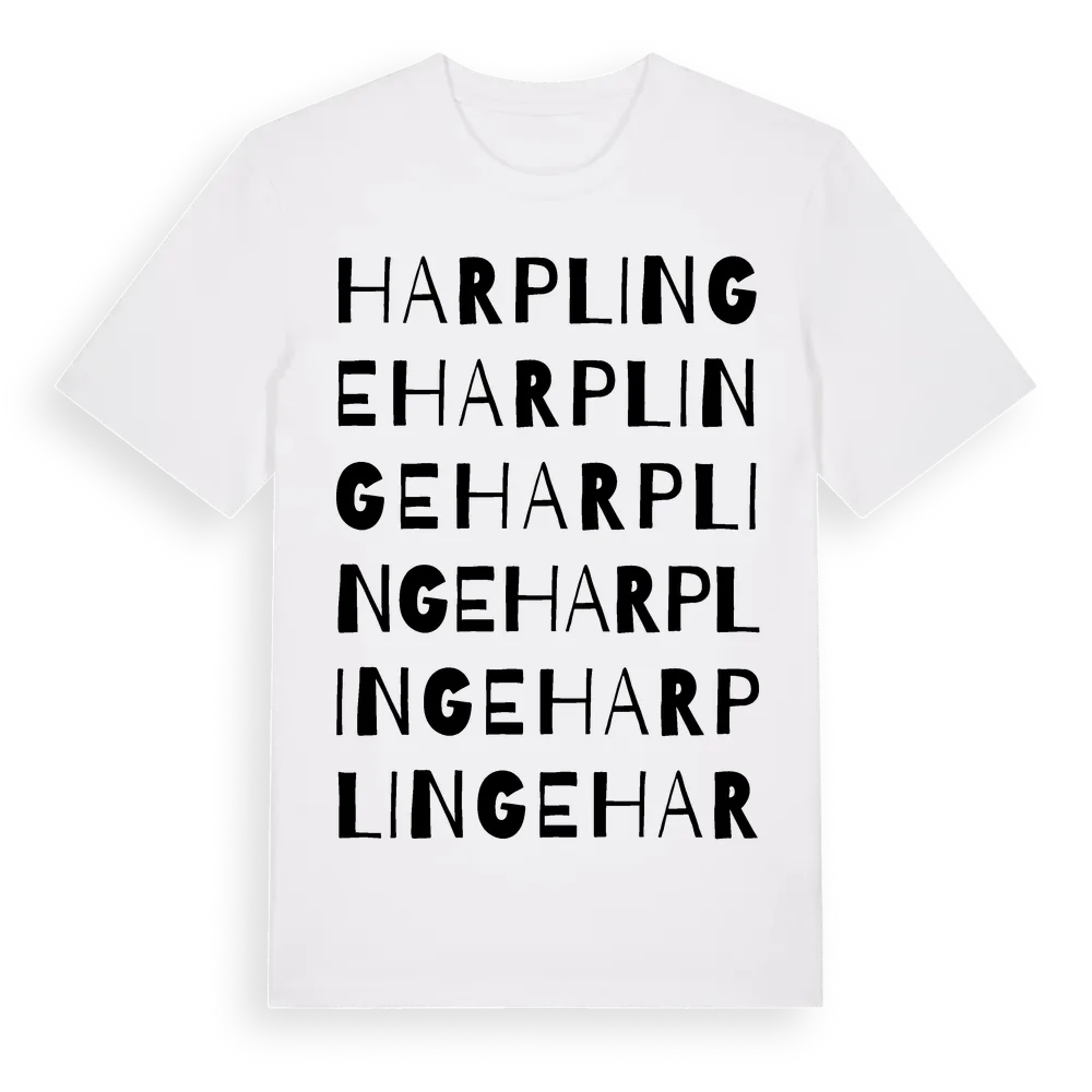 En ordlek byggd på Harplinges namn. Subtilt och klurig – ett motiv som bara de som verkligen känner platsen fullt ut förstår. Premium bomull, unisex – från byn Harplinge i Hallands län.