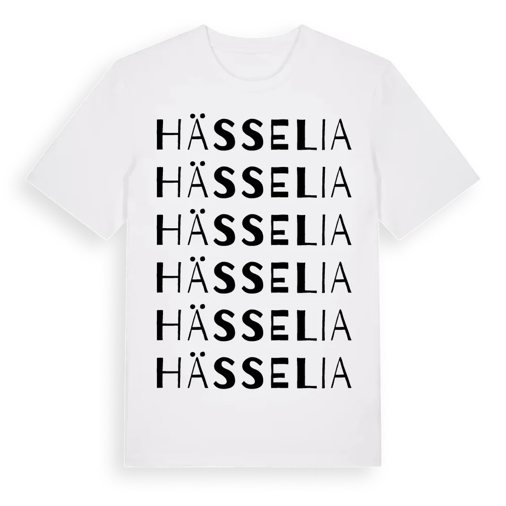 Hässelia ordlek t-shirt är inspirerad av Hässelia i Hallands län, Sverige. Tröjan är designad för dig som har en speciell koppling till platsen – oavsett om du bor här, har rötterna här eller bara älskar Hässelia.
