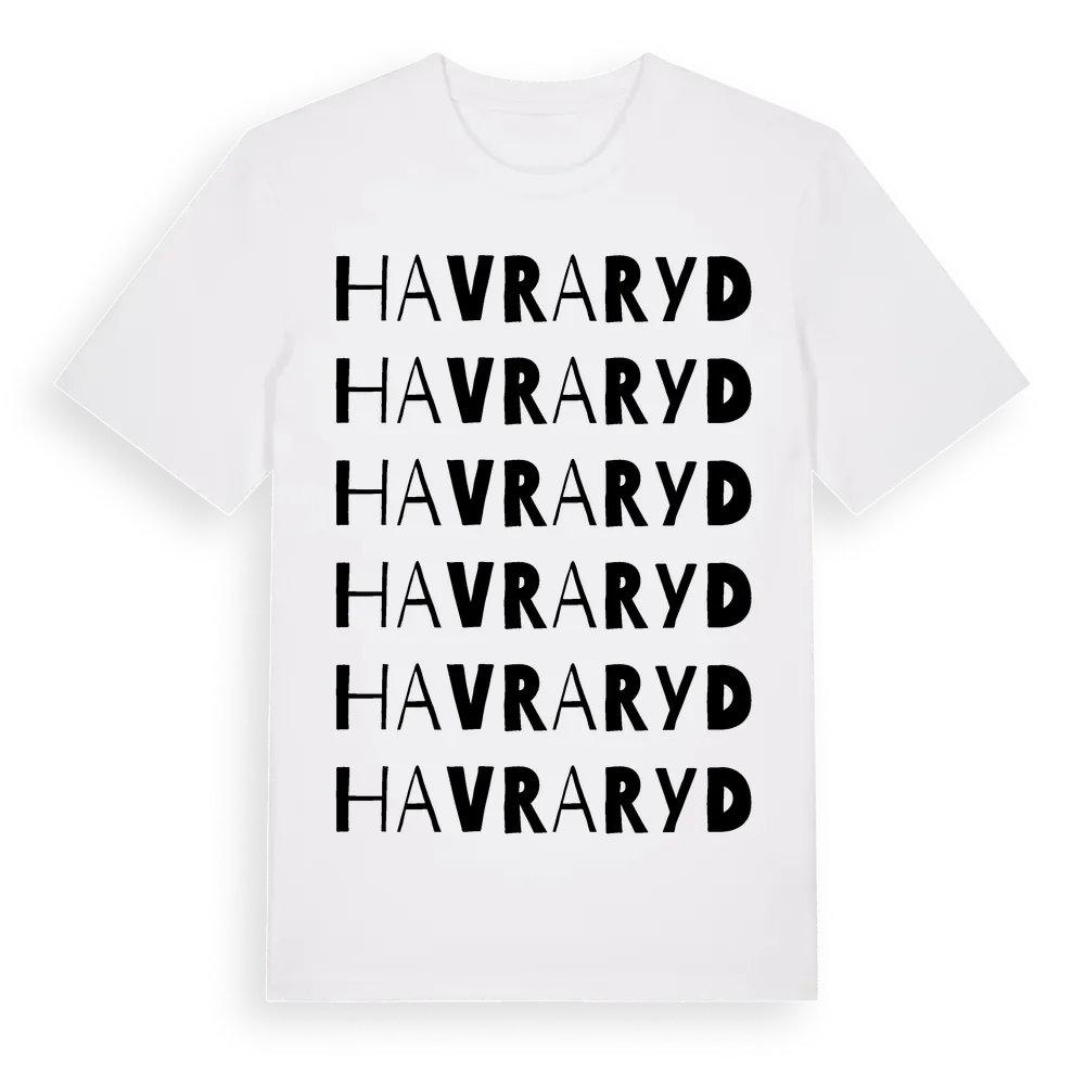 Havraryd ordlek t-shirt är inspirerad av byn Havraryd i Hallands län, Sverige. Tröjan är designad för dig som har en speciell koppling till platsen – oavsett om du bor här, har rötterna här eller bara älskar Havraryd.